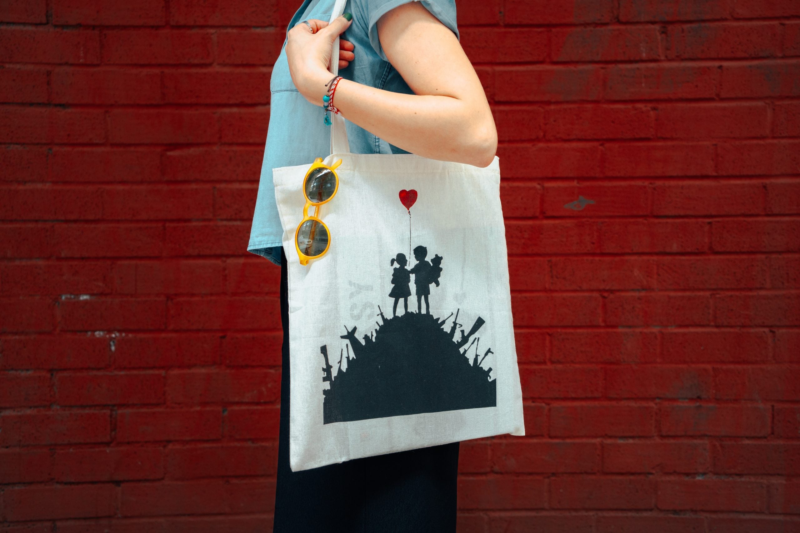Baumwolltaschen - Eine umweltfreundliche Alternative Baumwolltaschen sind eine umweltfreundliche Alternative zu Plastiktüten. Sie sind aus 100% Baumwolle hergestellt. Im Gegensatz zu Plastiktüten, die nur einmal verwendet werden können, sind Baumwolltaschen langlebig und können immer wieder verwendet werden. Darüber hinaus sind Baumwolltaschen sehr vielseitig und können für verschiedene Zwecke verwendet werden, wie z.B. zum Einkaufen, für die Schule oder für die Arbeit .Mit einer Baumwolltasche von Banksy kann man diese Botschaften nun auch im Alltag tragen – sei es beim Einkaufen oder in der Schule/Uni. Man signalisiert damit nicht nur seinen eigenen Kunstgeschmack, sondern auch sein Engagement für gesellschaftliche Themen.
