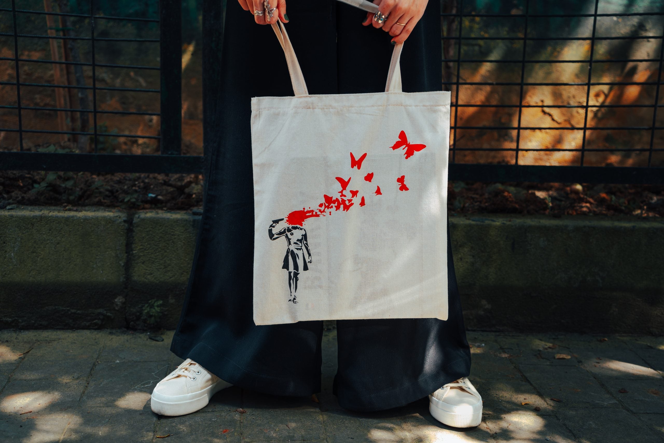 Baumwolltaschen - Eine umweltfreundliche Alternative Baumwolltaschen sind eine umweltfreundliche Alternative zu Plastiktüten. Sie sind aus 100% Baumwolle hergestellt. Im Gegensatz zu Plastiktüten, die nur einmal verwendet werden können, sind Baumwolltaschen langlebig und können immer wieder verwendet werden. Darüber hinaus sind Baumwolltaschen sehr vielseitig und können für verschiedene Zwecke verwendet werden, wie z.B. zum Einkaufen, für die Schule oder für die Arbeit .Mit einer Baumwolltasche von Banksy kann man diese Botschaften nun auch im Alltag tragen – sei es beim Einkaufen oder in der Schule/Uni. Man signalisiert damit nicht nur seinen eigenen Kunstgeschmack, sondern auch sein Engagement für gesellschaftliche Themen.