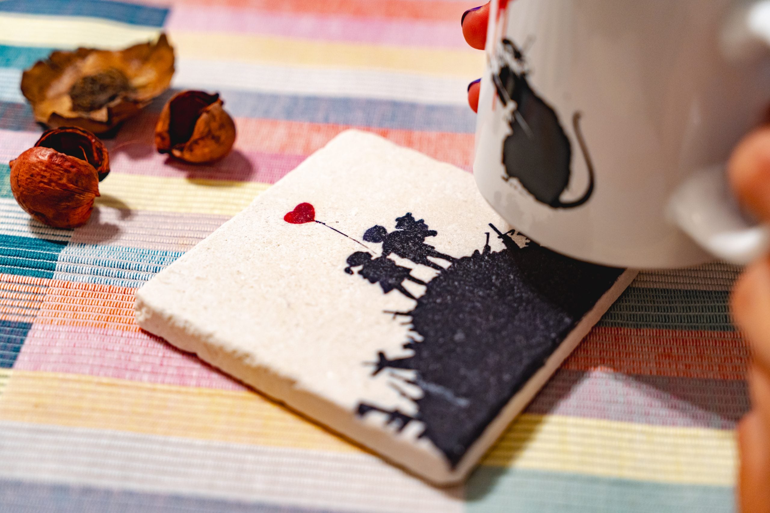 Diese Untersetzer sind aus hochwertigem, strapazierfähigem Material gefertigt, das gegen Flüssigkeit und Flecken beständig ist. Sie bieten eine praktische und ästhetische Lösung. Wenn Sie Farbe in Ihr Zuhause oder Büro bringen und gleichzeitig eine starke künstlerische Aussage teilen möchten, dann sind diese Untersetzer eine hervorragende Wahl.