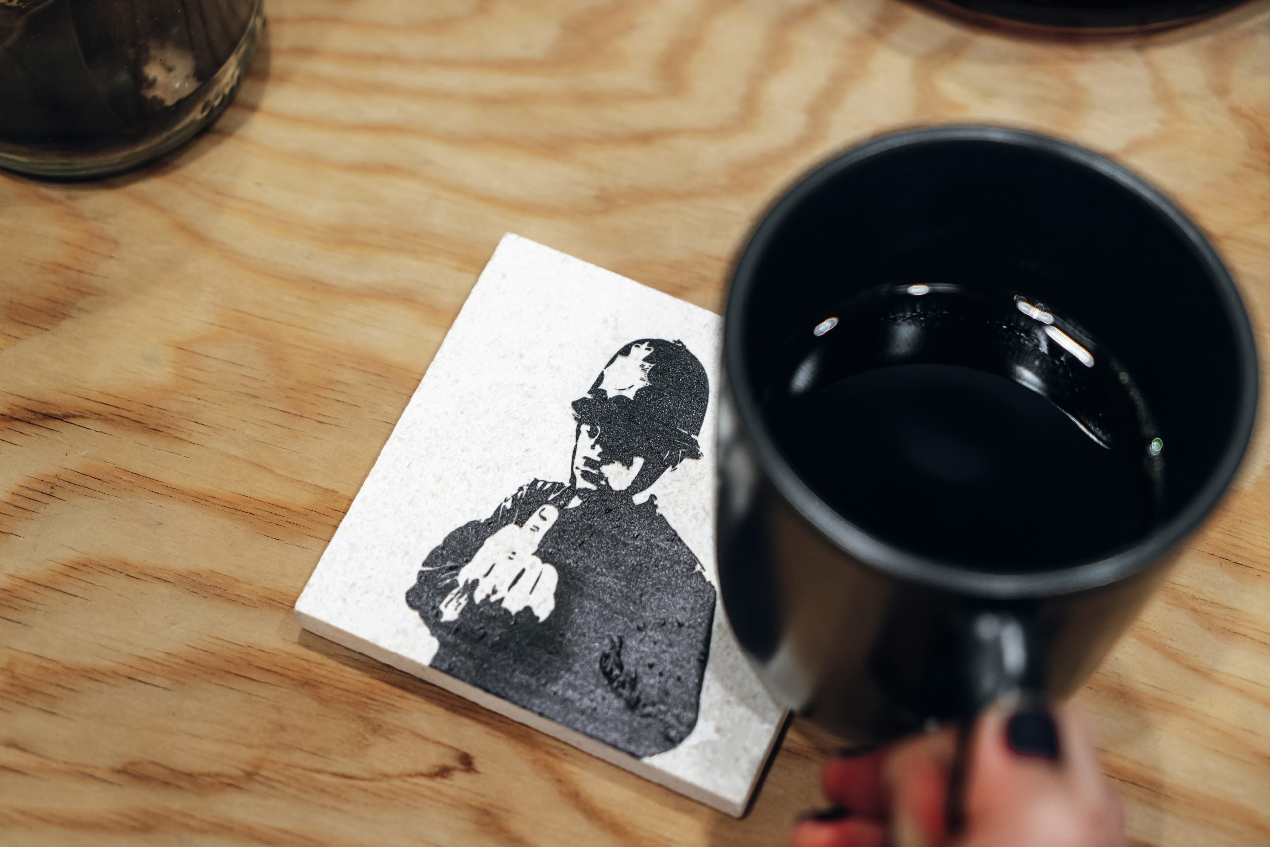 Diese Untersetzer sind aus hochwertigem, strapazierfähigem Material gefertigt, das gegen Flüssigkeit und Flecken beständig ist. Sie bieten eine praktische und ästhetische Lösung. Wenn Sie Farbe in Ihr Zuhause oder Büro bringen und gleichzeitig eine starke künstlerische Aussage teilen möchten, dann sind diese Untersetzer eine hervorragende Wahl.