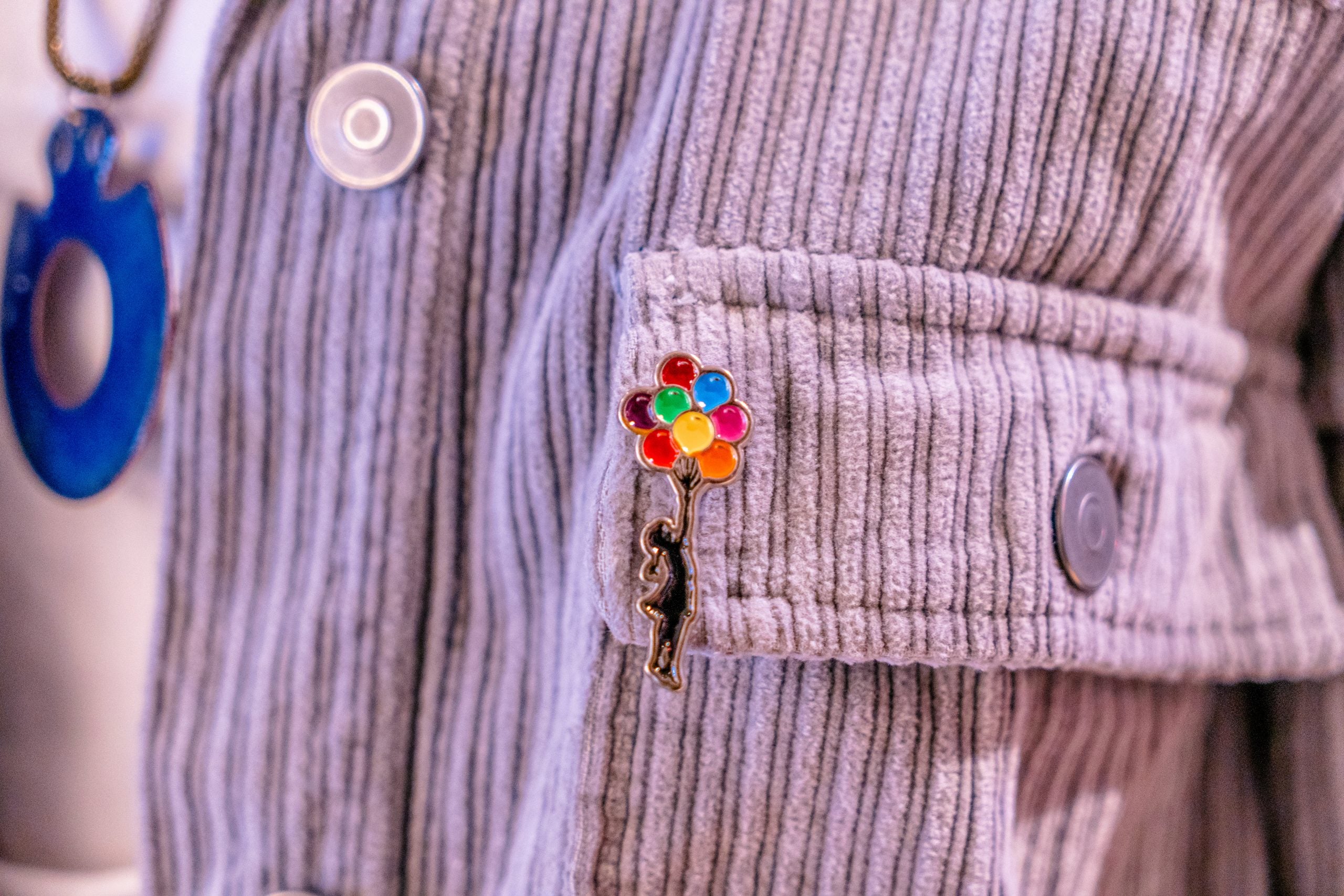 The brooch contains " Floating Girl ", " Flower Thrower ", " Kids on Guns " and " Rude Copper ".