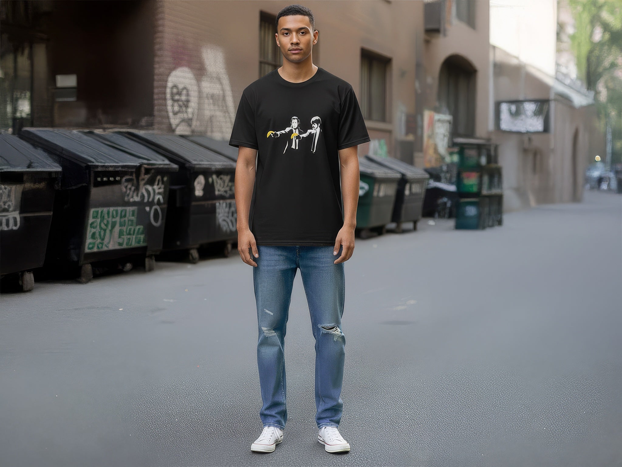 Dieses T-Shirt wurde mit einem ikonischen Motiv gestaltet, das Banksys provokanten Humor und seine gesellschaftskritische Haltung widerspiegelt. Das Design interpretiert Symbole von Macht und Gewalt auf ironische Weise neu und bringt den unverwechselbaren, hinterfragenden Stil des Künstlers eindrucksvoll zum Ausdruck.Dank der hochwertigen Druckqualität kommen die Details klar und wirkungsvoll zur Geltung. Gefertigt aus 100 % Baumwolle bietet das T-Shirt einen hohen Tragekomfort für den ganzen Tag. Der Unisex-Schnitt sowie die verschiedenen Größen machen es sowohl für Damen als auch für Herren geeignet.Ein ausdrucksstarkes und aufmerksamkeitsstarkes Kleidungsstück für alle, die Banksys mutige und zum Nachdenken anregende Kunst in ihren Alltag integrieren möchten.